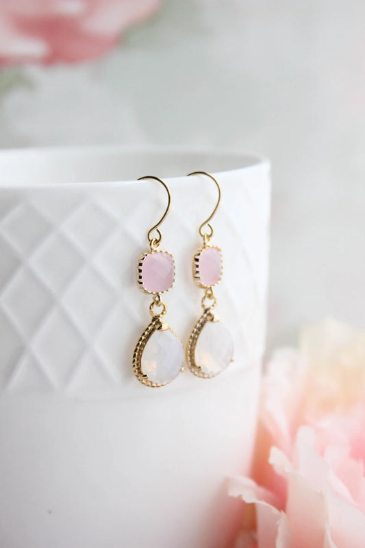 Opal and Pink Glass Dangle Earrings