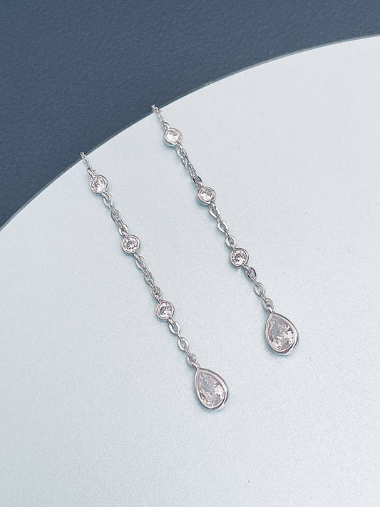 "ELORA" Silver Elegant Chain And Crystal Drop Needle