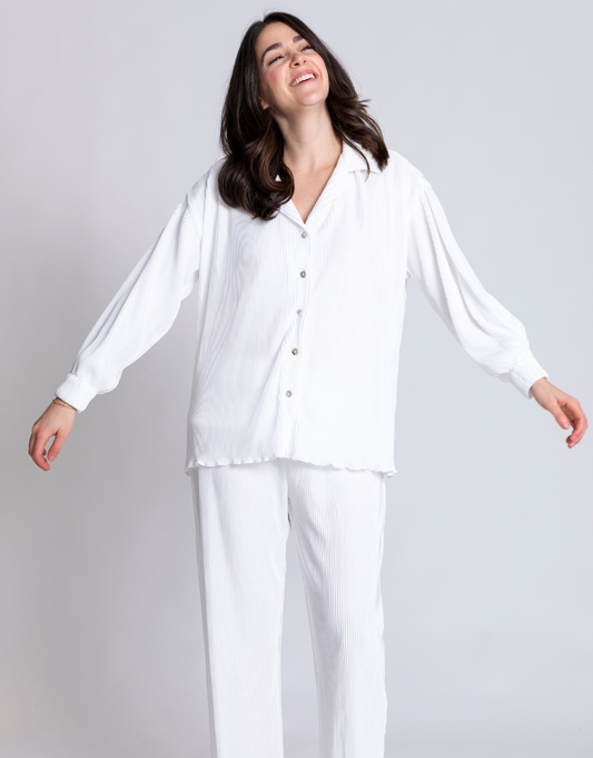 Button Up & Short Linen Wedding Morning Set