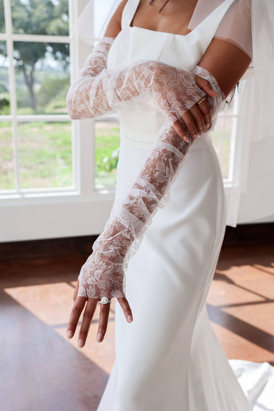 The "Mila" Sheer Tulle Bridal Sleeves | Fingerless Gloves