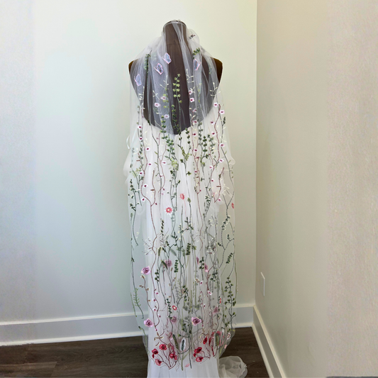 Red & Green Wildflower Veil