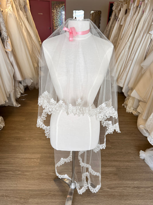 Waltz Length Lace Veil with Scalloped Edge