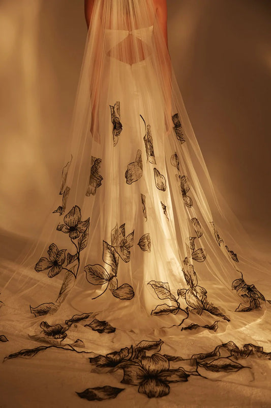 Black Embroidery Shadow Halo Veil by Theia