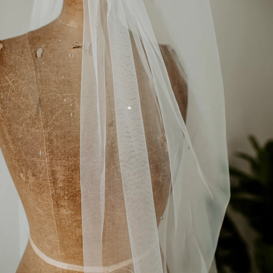 Complete your wedding day look with our exquisite wedding veils. Perfect for adding a touch of elegance, drama, or tradition to your special day, our veils come in a variety of lengths and styles to complement any wedding gown or outfit. From classic cathedral veils to romantic fingertip styles, find the perfect veil to make your wedding day unforgettable.