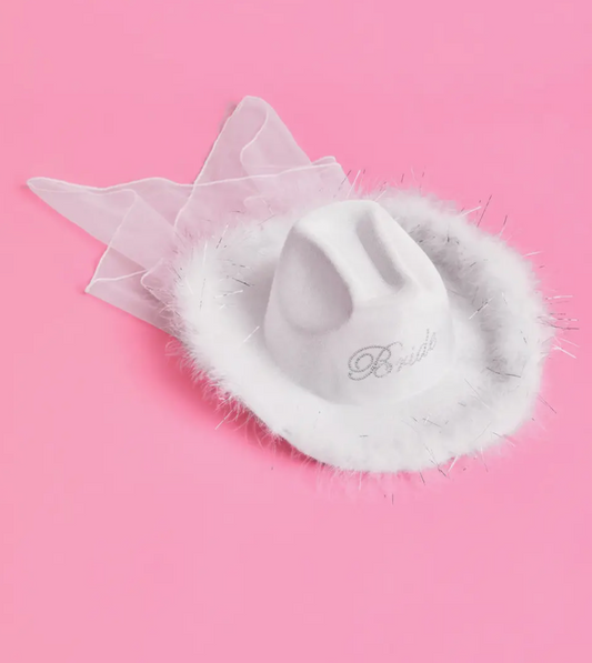 Bride Cowgirl Hat + Veil, Rodeo Bach Party, Bridal Accessory