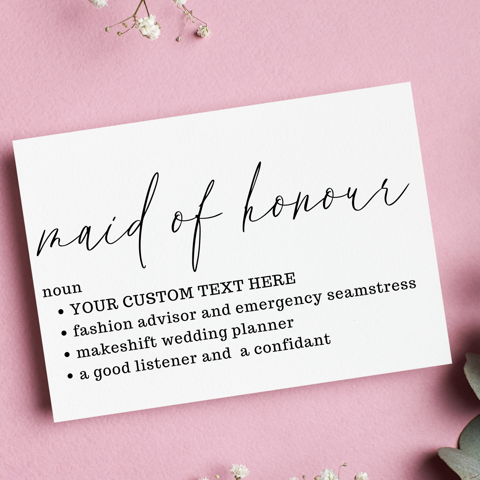 The perfect funny and personalized bridesmaid proposal card!