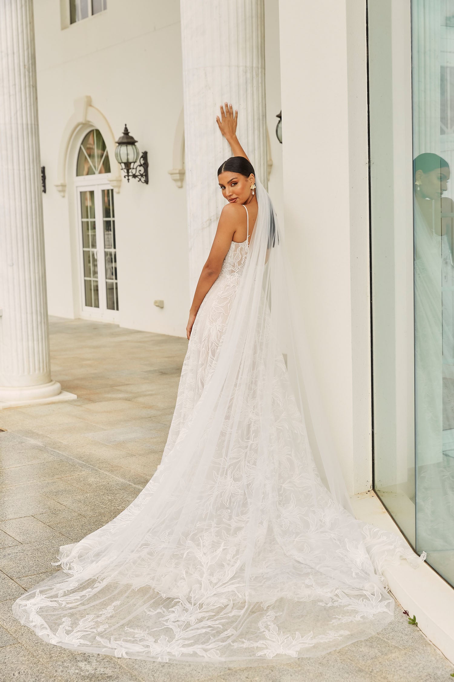 The Dune veil finished with the stunning floral sheet lace, matching the Dune dress.