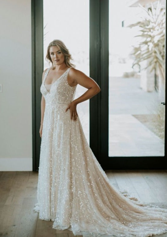 If a dress is a sample from the boutique or a part of a pink collection it means that the gowns haven't been worn down the aisle, they are essentially new. They may have been tried on by Brides who chose a different dress. We hold our samples to high standards, though some may need a bit of TLC, like a broken hook/eye or a loose button. All these little problems can be solved by our skilled Bridal seamstresses in alterations.