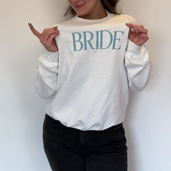 Celebrate the Bride in STYLE! Whether she’s getting ready for the big day, heading off on her honeymoon, or just lounging, this is the best gift! A totally custom sweater, with "BRIDE" embroidered on the front. Add a custom wedding date to make it extra special!